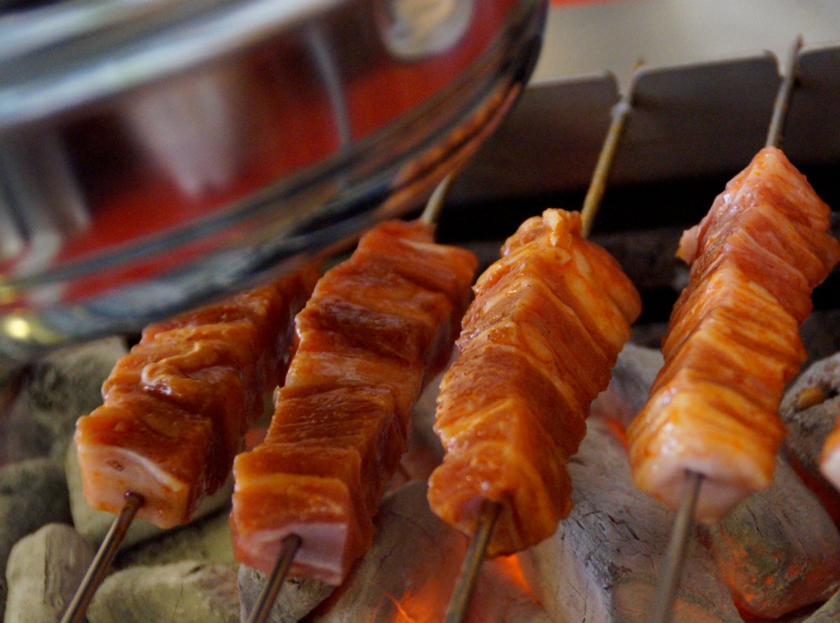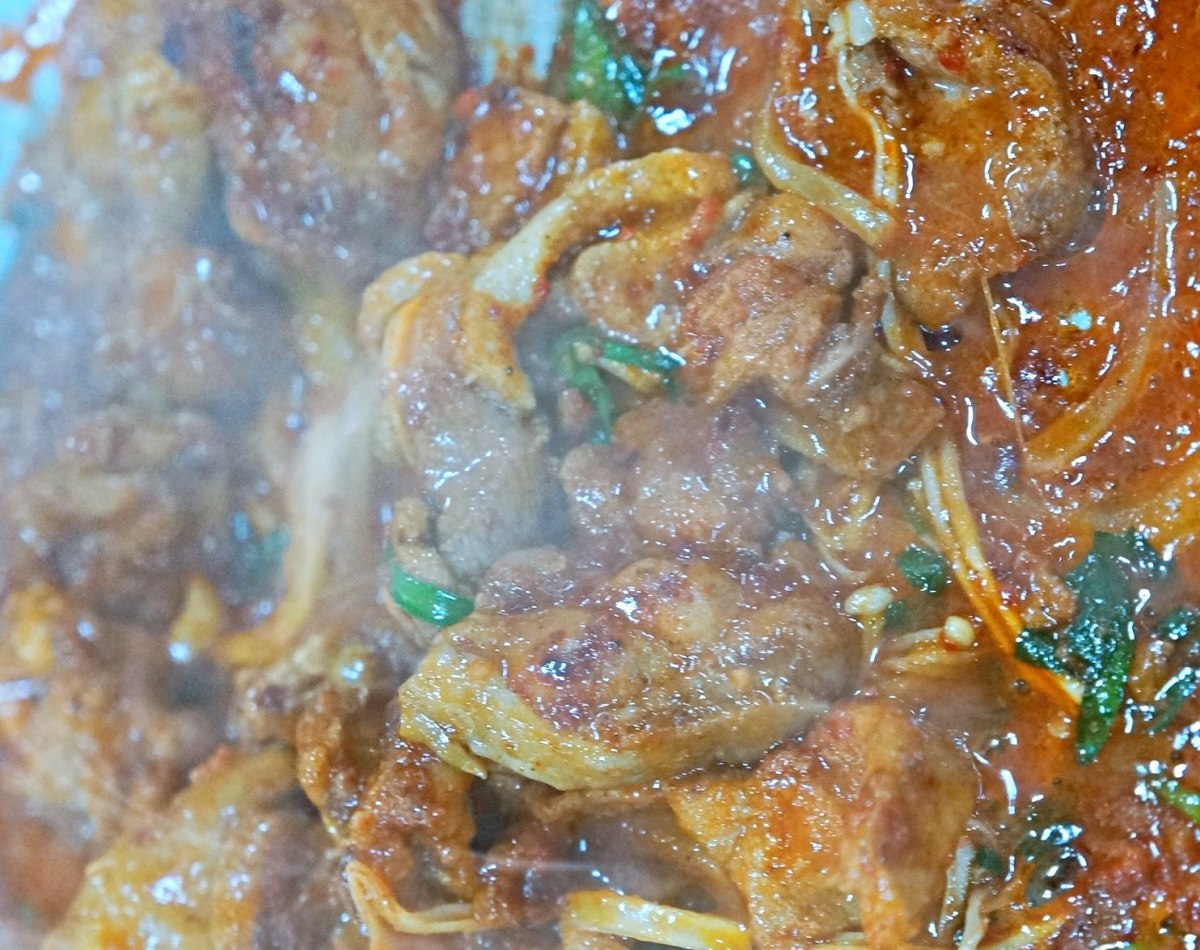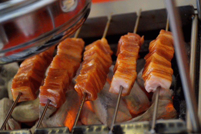 양푼에 돼지고기, 어묵, 김치가 푸짐했는데요